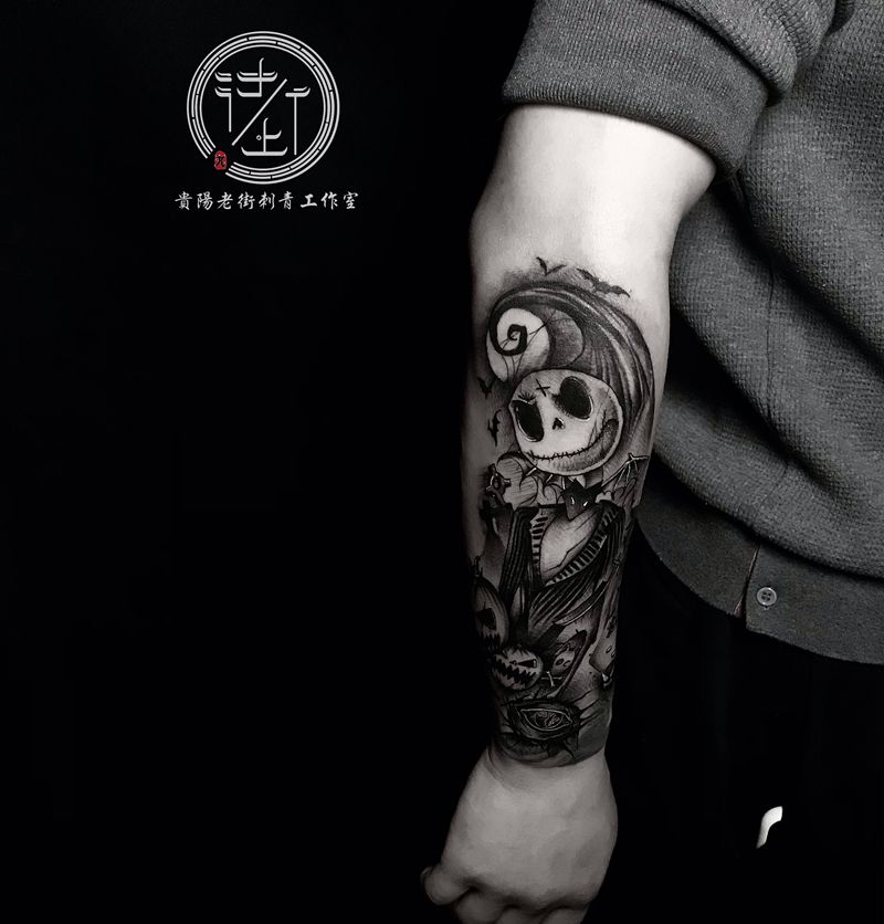 黑灰满背纹身图案