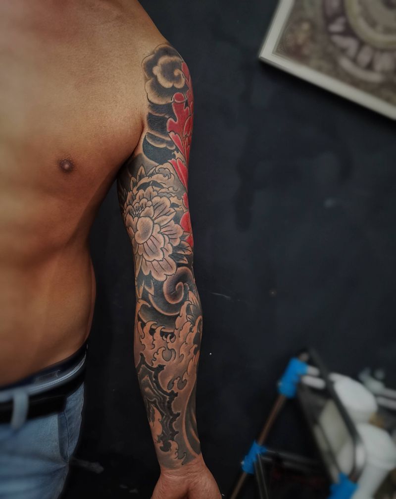新传统花臂未完成纹身图片_新传统纹身图案