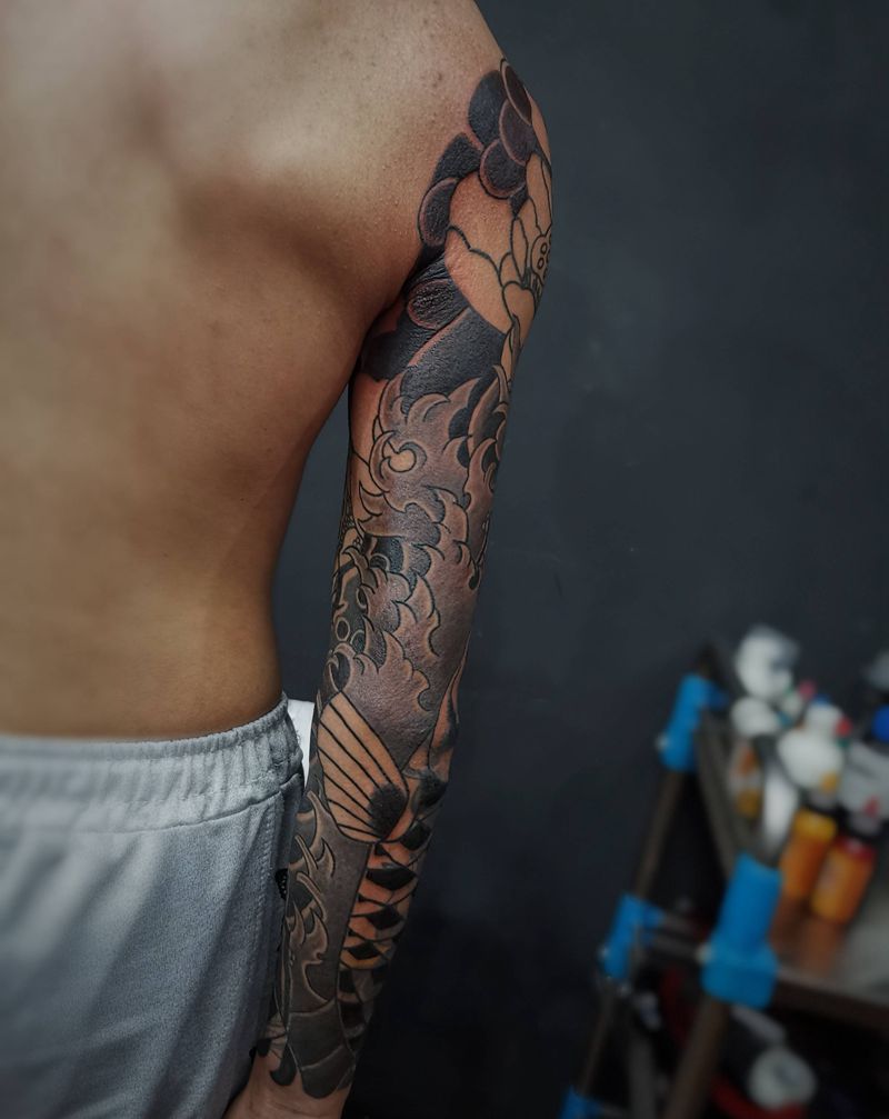 当前位置: 首页 >贵州省贵阳市纹身店-贵阳魔魂刺青纹身图案>花臂未完成下次继续纹身图片_老传统纹身图案
