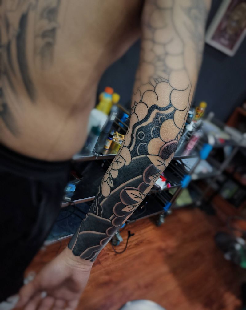 当前位置: 首页 >贵州省贵阳市纹身店-贵阳魔魂刺青纹身图案>老传统花臂下次继续纹身图片_老传统纹身图案