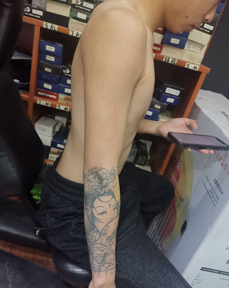 当前位置: 首页 >贵州省贵阳市纹身店-贵阳魔魂刺青纹身图案>老传统花臂遮盖未完成纹身图片_老传统纹身图案