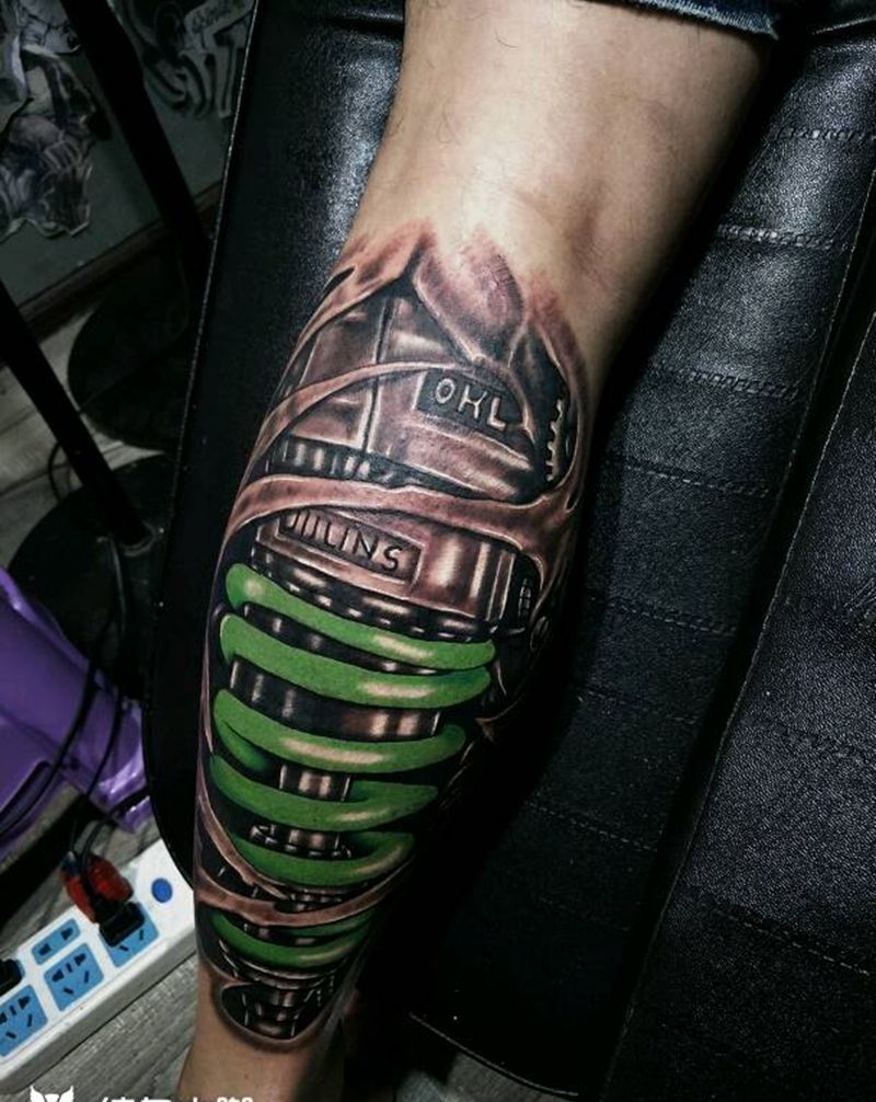 当前位置: 首页 >贵州省贵阳市纹身店-贵阳魔魂刺青纹身图案>给帅哥小腿后部打造的机械图纹身图片