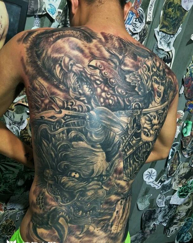 黑灰满背纹身图案
