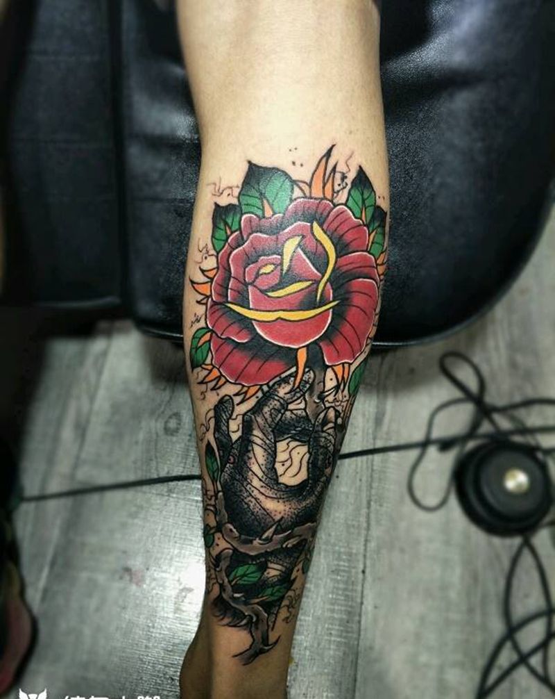 • T网红王老大花腿龙纹身图片_腿部新传统纹身图案
