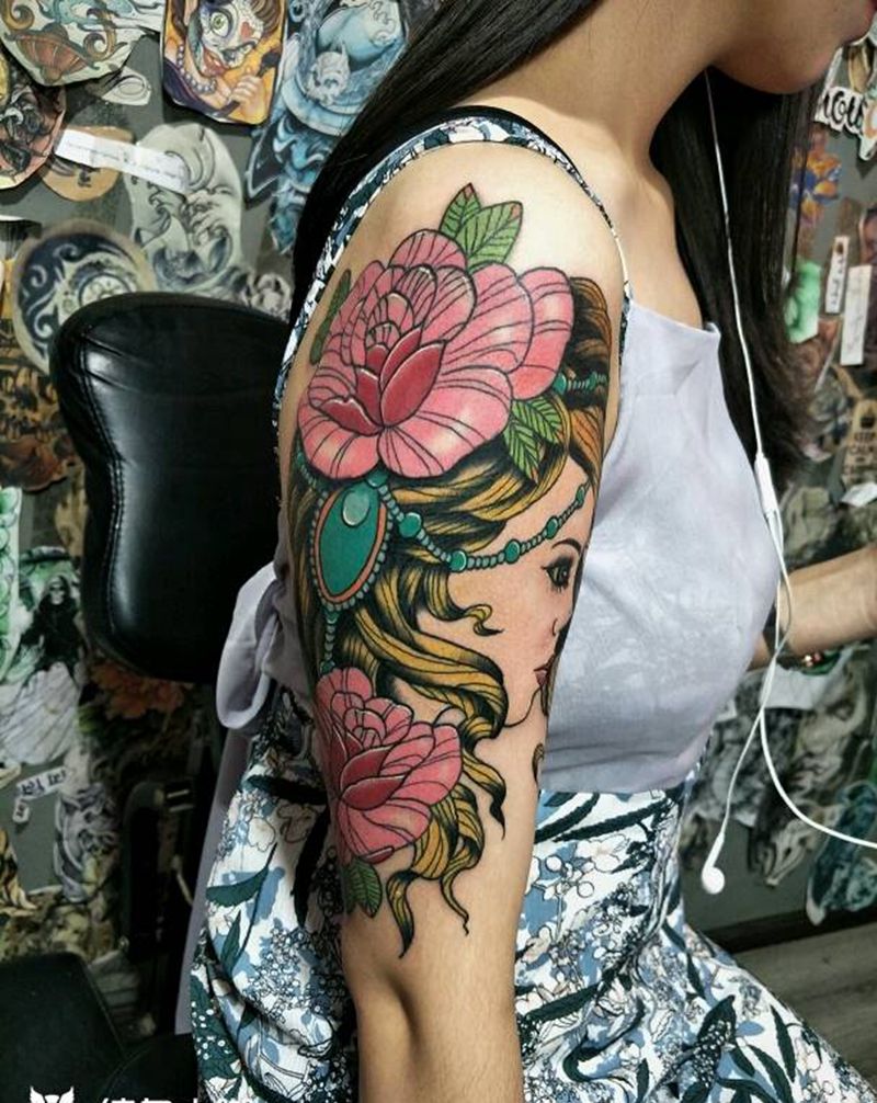 • 女性大花胸纹身_43张霸气漂亮的女性大花胸纹身图案作品