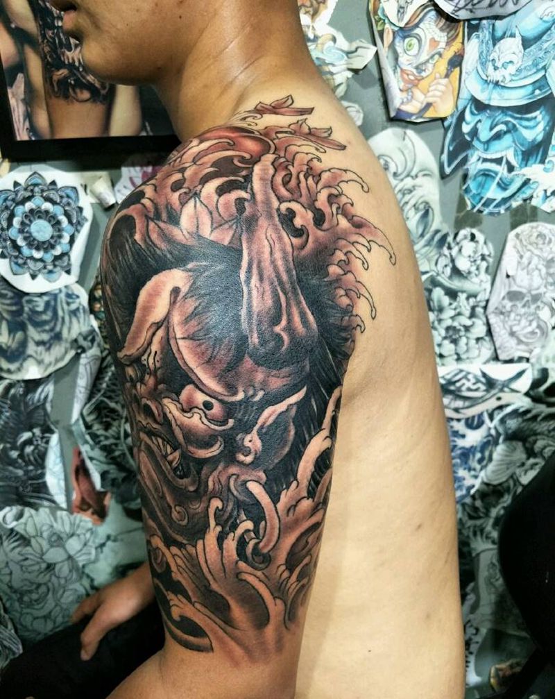 • 纹身吧推荐的披肩图腾半胛纹身图案作品展示