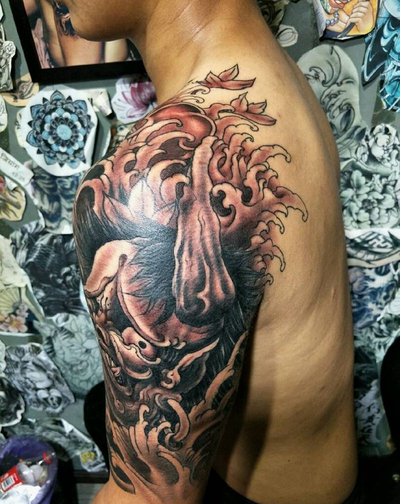 • 纹身吧推荐的披肩图腾半胛纹身图案作品展示