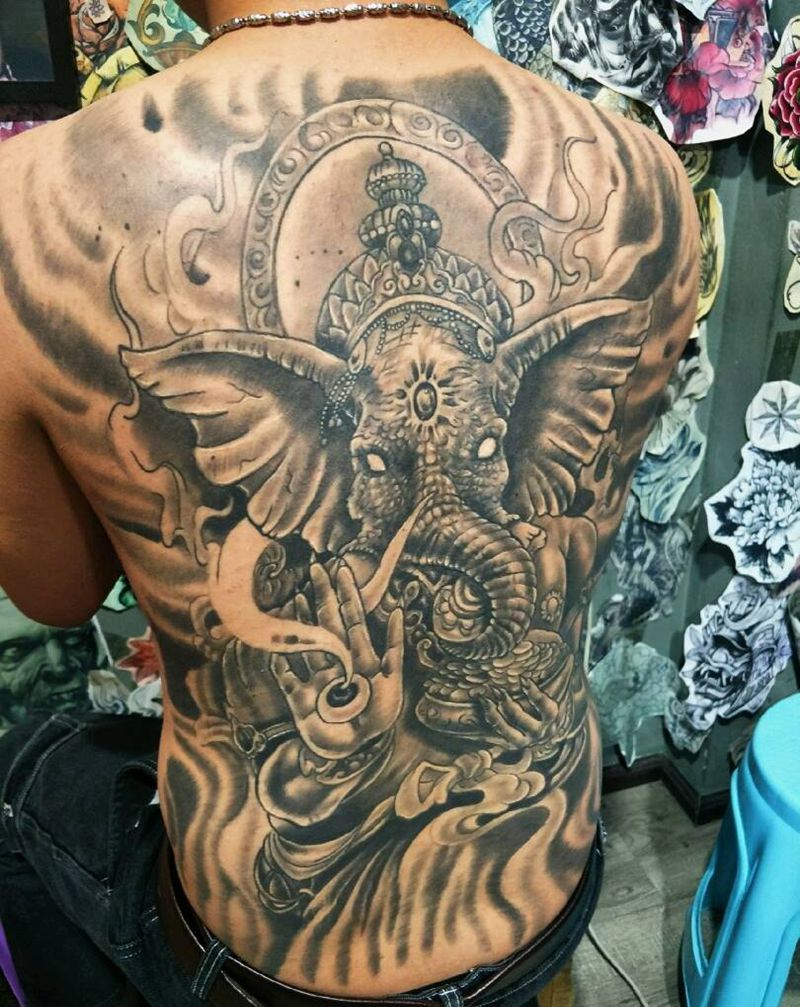 当前位置: 首页 >贵州省贵阳市纹身店-贵阳魔魂刺青纹身图案>满背象神纹身图片