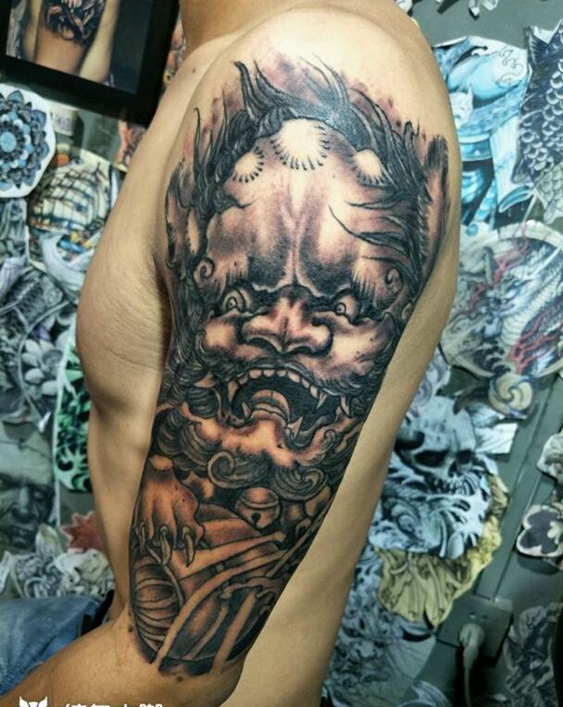 当前位置: 首页 >贵州省贵阳市纹身店-贵阳魔魂刺青纹身图案>唐狮纹身图片