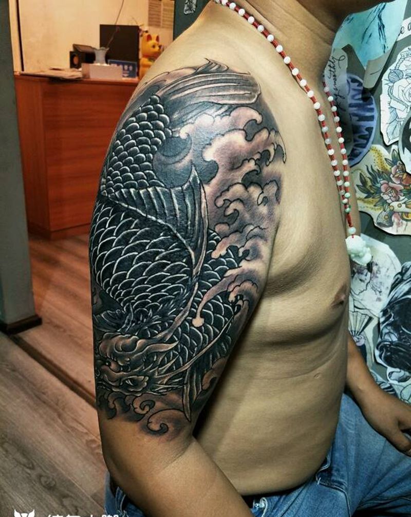 当前位置: 首页 >贵州省贵阳市纹身店-贵阳魔魂刺青纹身图案>遮盖失败纹身用獒鱼对付纹身图片