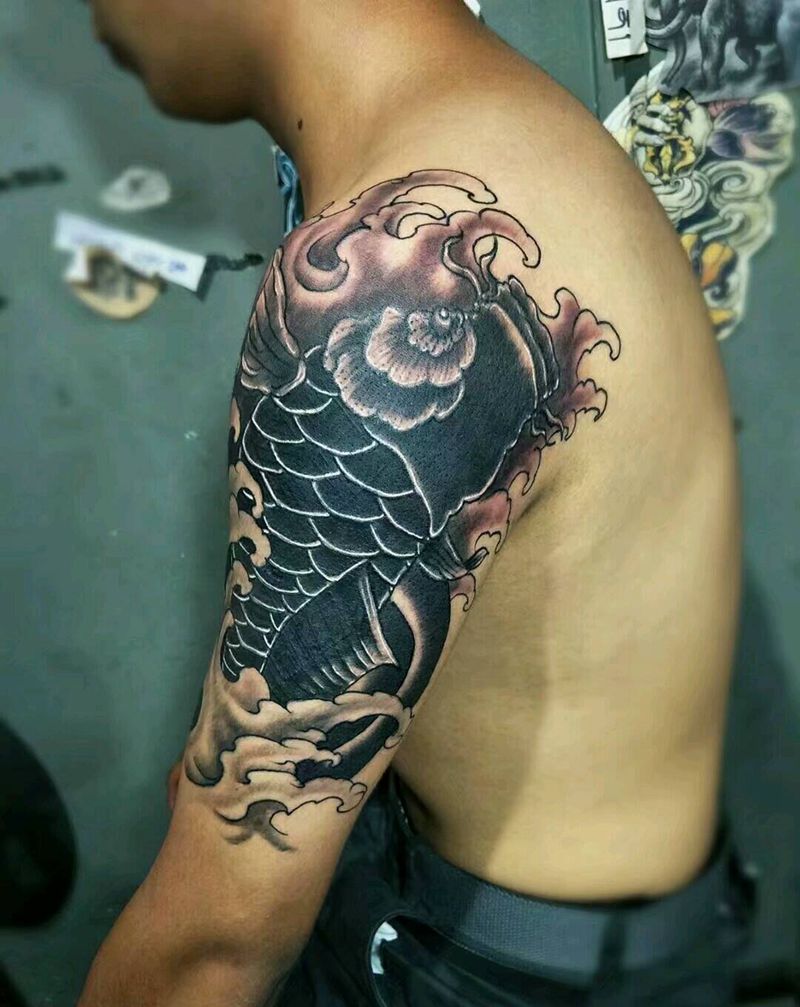 当前位置: 首页 >贵州省贵阳市纹身店-贵阳魔魂刺青纹身图案>遮盖纹身用鲤鱼对付纹身图片