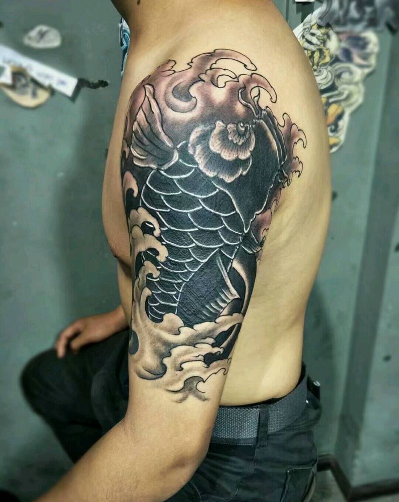 当前位置: 首页 >贵州省贵阳市纹身店-贵阳魔魂刺青纹身图案>遮盖纹身用鲤鱼对付纹身图片