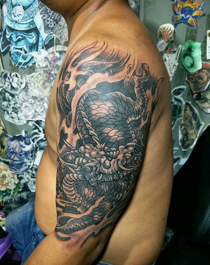 • 纹身吧推荐的披肩图腾半胛纹身图案作品展示