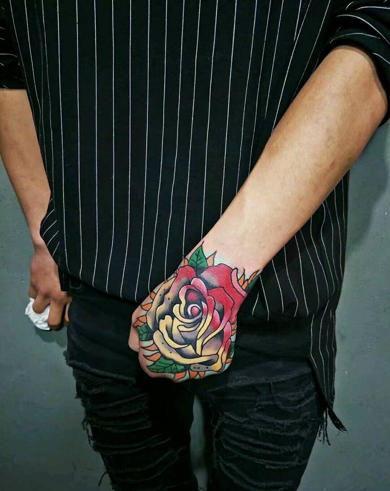 • 手背潮流时尚的玫瑰花眼睛纹身图案