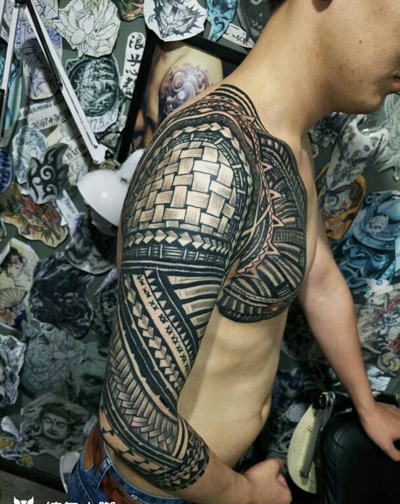 • 纹身吧推荐的披肩图腾半胛纹身图案作品展示