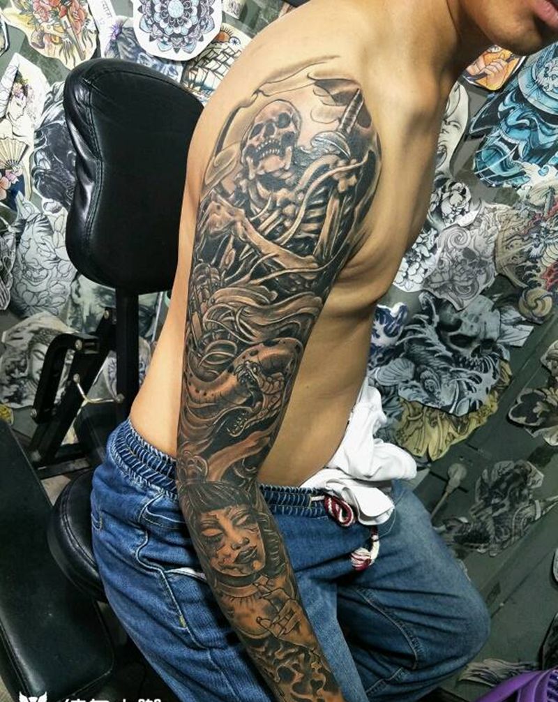 当前位置: 首页 >贵州省贵阳市纹身店-贵阳魔魂刺青纹身图案>经典欧美花臂纹身图片