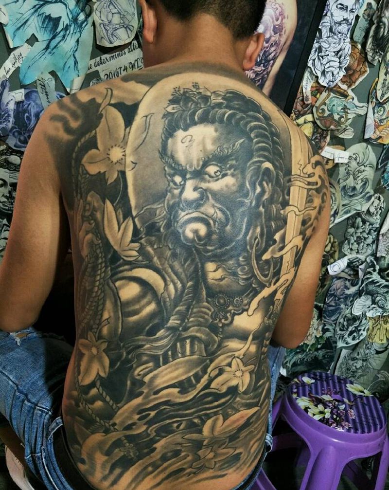 当前位置: 首页 >贵州省贵阳市纹身店-贵阳魔魂刺青纹身图案>满背不动明王恢复后纹身图片