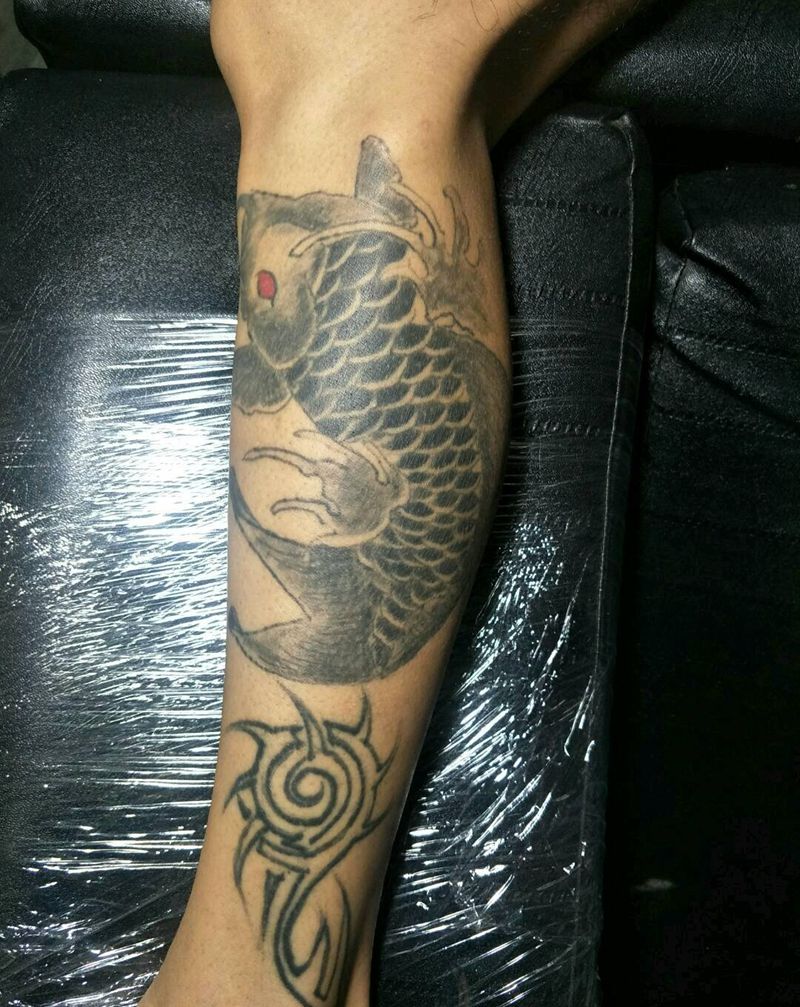 • T网红王老大花腿龙纹身图片_腿部新传统纹身图案