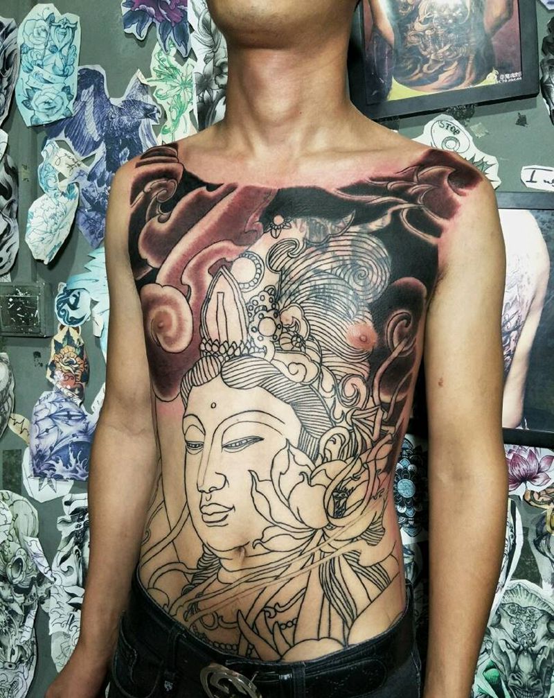当前位置: 首页 >贵州省贵阳市纹身店-贵阳魔魂刺青纹身图案>满肚子未完成下次继续纹身图片
