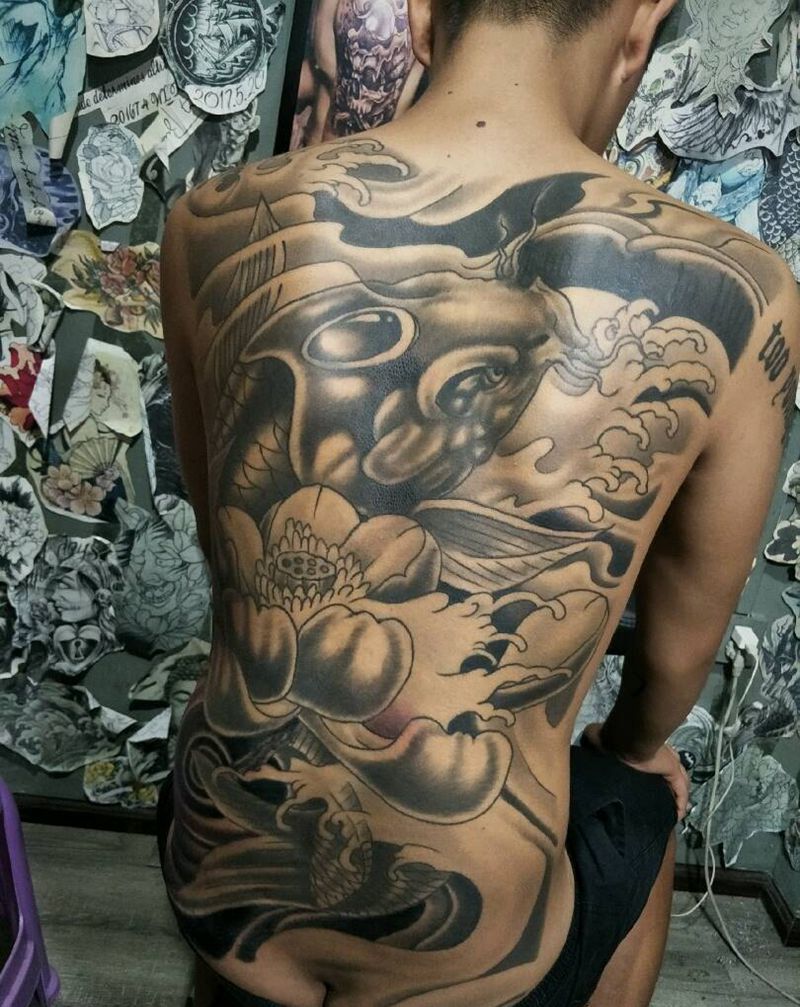 当前位置: 首页 >贵州省贵阳市纹身店-贵阳魔魂刺青纹身图案>满背鲤鱼完成纹身图片