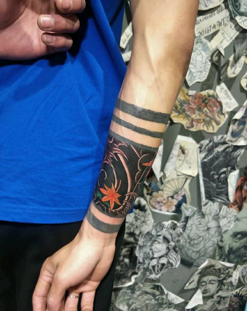 当前位置: 首页 >贵州省贵阳市纹身店-贵阳魔魂刺青纹身图案>添加臂环纹身,黑圈不是本店作品纹身图片