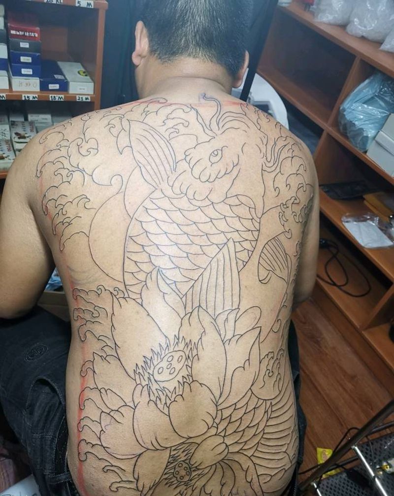 当前位置: 首页 >贵州省贵阳市纹身店-贵阳魔魂刺青纹身图案>满背鲤鱼未完成纹身图片