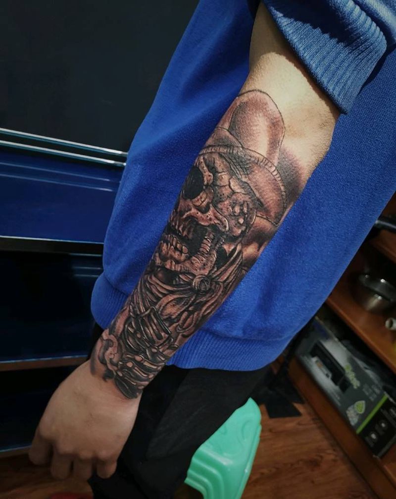 骷髅完成纹身图片_欧美黑灰纹身图案