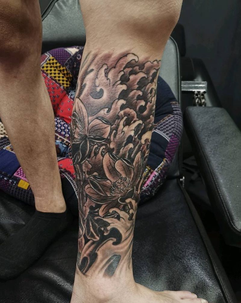 一组15张莲花纹身手