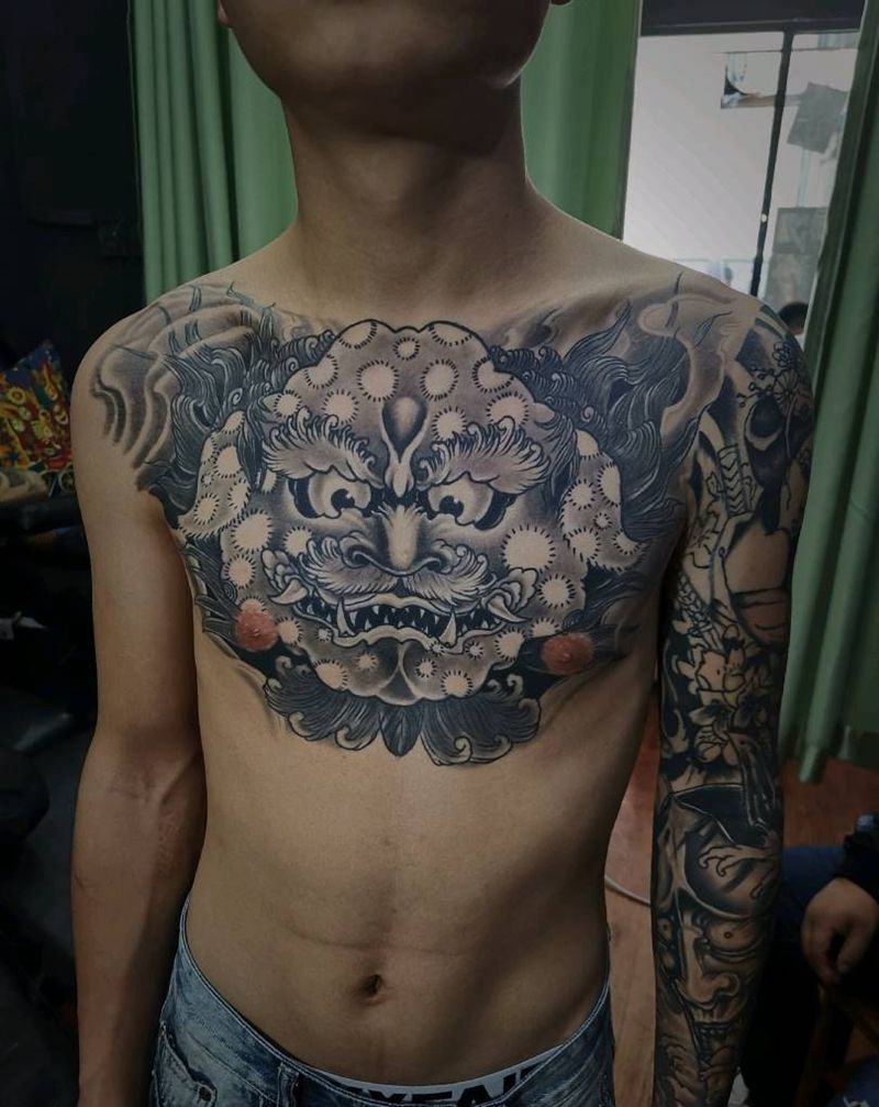 恢复后的唐狮纹身图片_新传统纹身图案