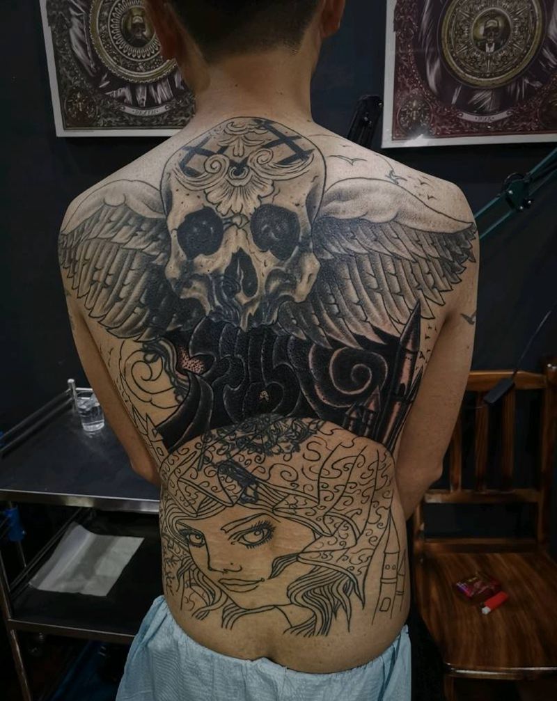 • 纹身吧推荐的披肩图腾半胛纹身图案作品展示