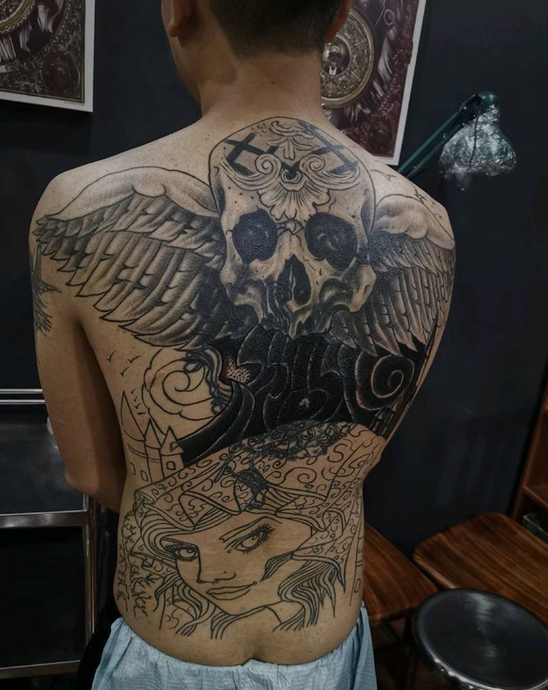 • 纹身吧推荐的披肩图腾半胛纹身图案作品展示