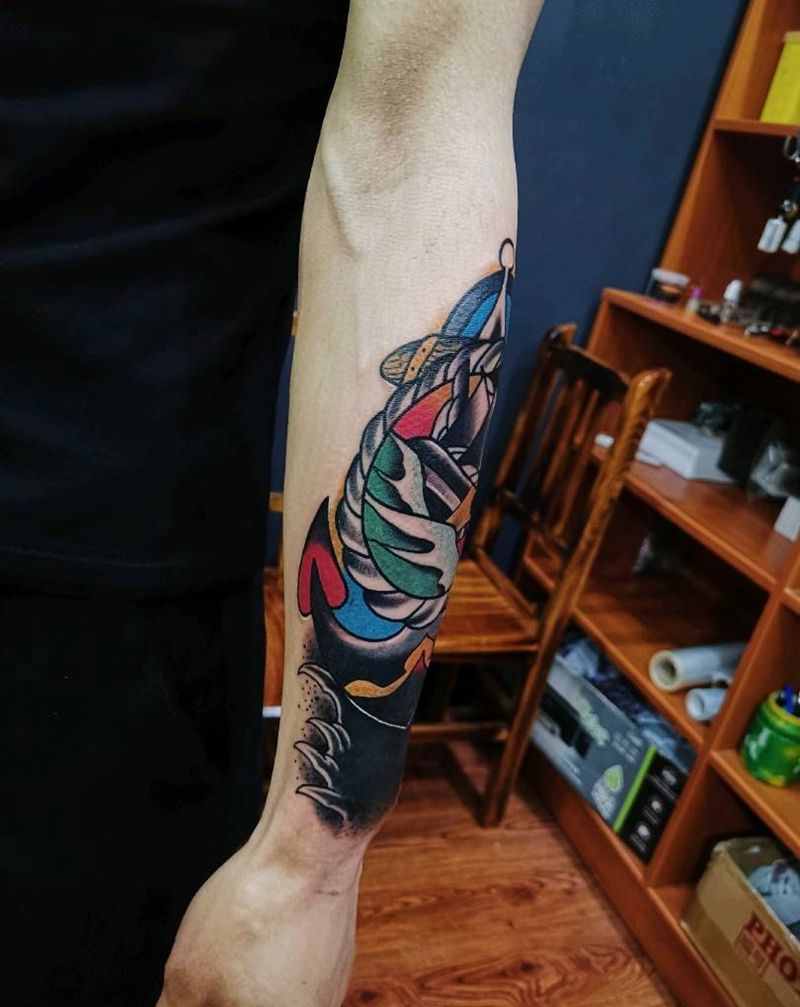 当前位置: 首页 >贵州省贵阳市纹身店-贵阳魔魂刺青纹身图案>遮盖失败纹身用船以锚对付纹身图片_Old School纹身图案