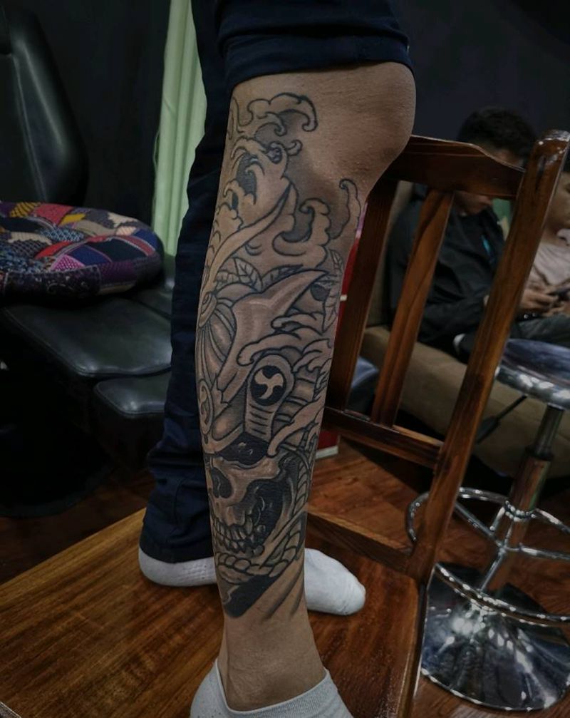 当前位置: 首页 >贵州省贵阳市纹身店-贵阳魔魂刺青纹身图案>鬼武浅色风格纹身图片_新传统纹身图案