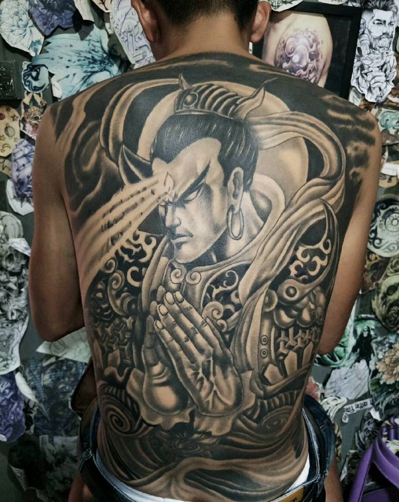 黑灰满背纹身图案