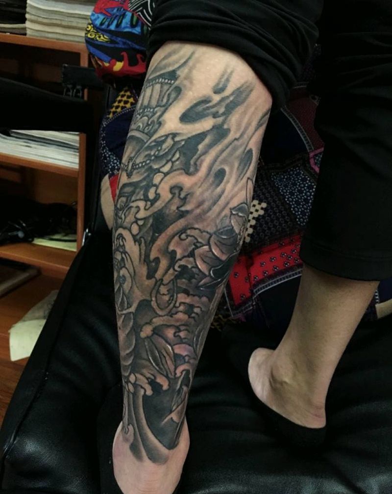 • T网红王老大花腿龙纹身图片_腿部新传统纹身图案