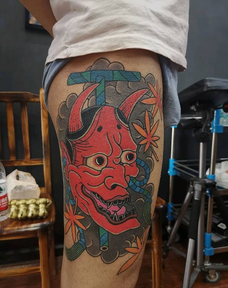 当前位置: 首页 >贵州省贵阳市纹身店-贵阳魔魂刺青纹身图案>老传统般若纹身图片_老传统彩色纹身图案