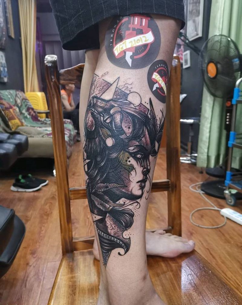 • T网红王老大花腿龙纹身图片_腿部新传统纹身图案