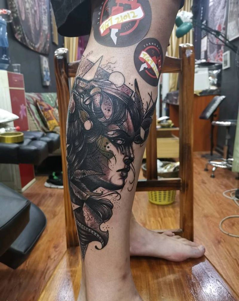 • T网红王老大花腿龙纹身图片_腿部新传统纹身图案