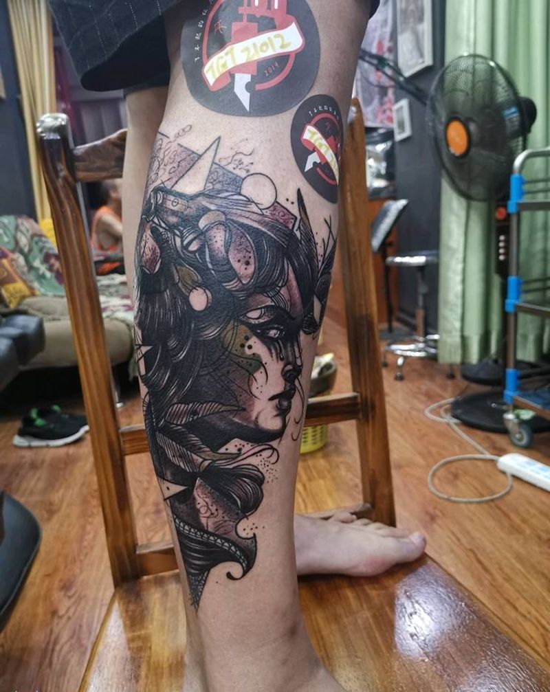 • T网红王老大花腿龙纹身图片_腿部新传统纹身图案