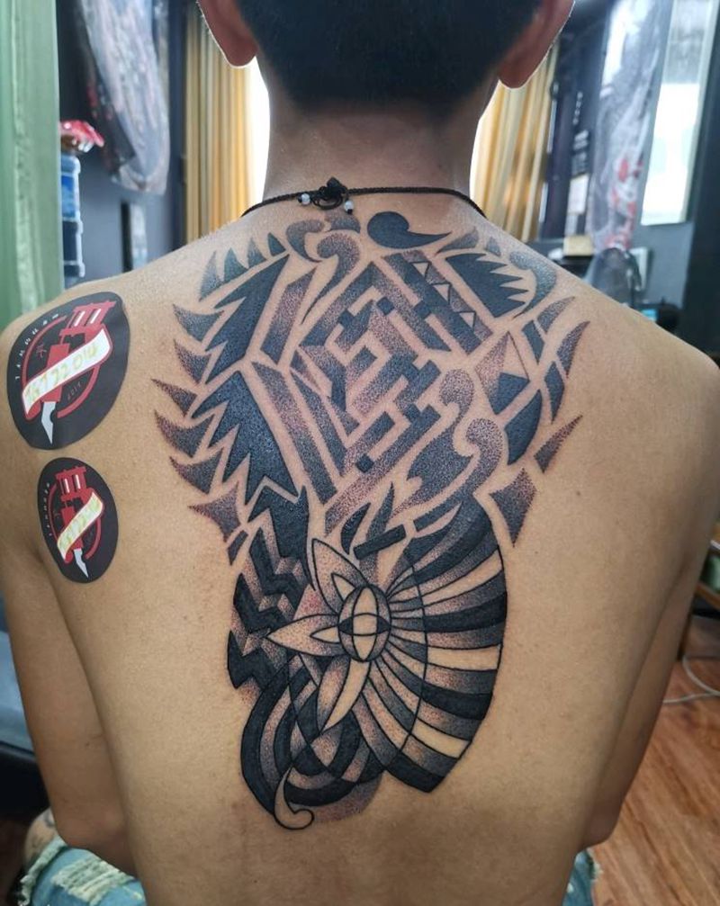 • 黑灰满背纹身图案