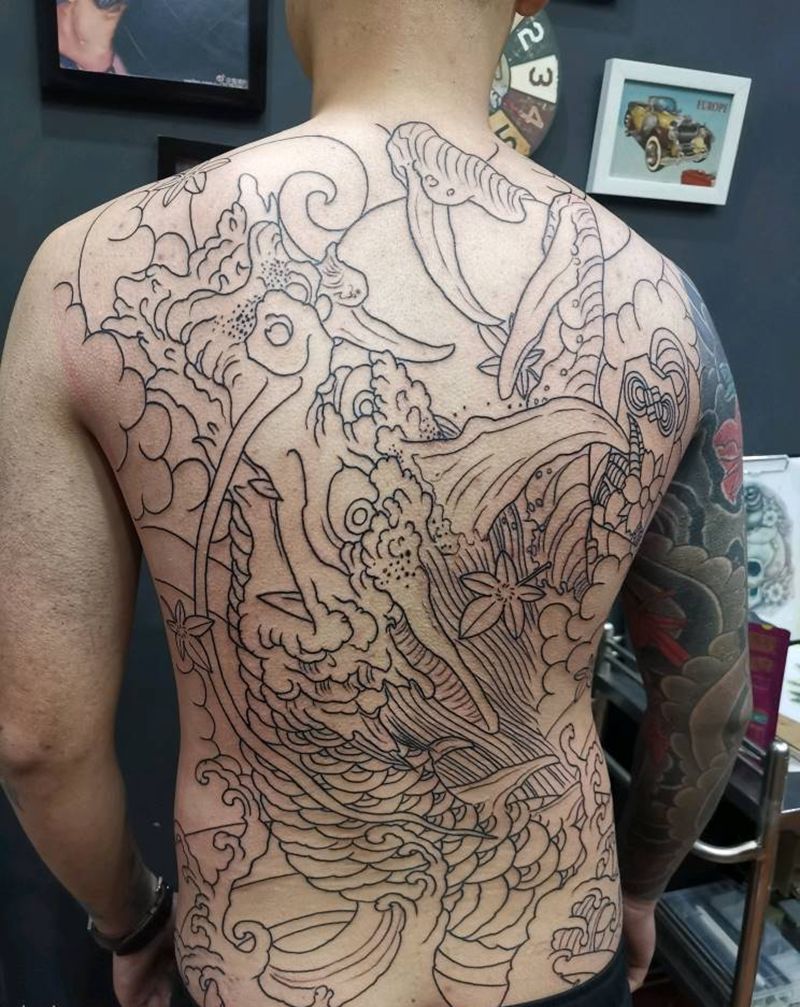 • T云龙九郎纹身图片_背部老传统云龙九郎纹身图案