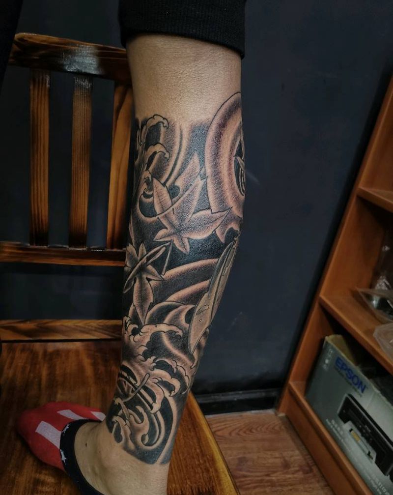 当前位置: 首页 >贵州省贵阳市纹身店-贵阳魔魂刺青纹身图案>鬼武包小腿纹身图片_新传统纹身图案