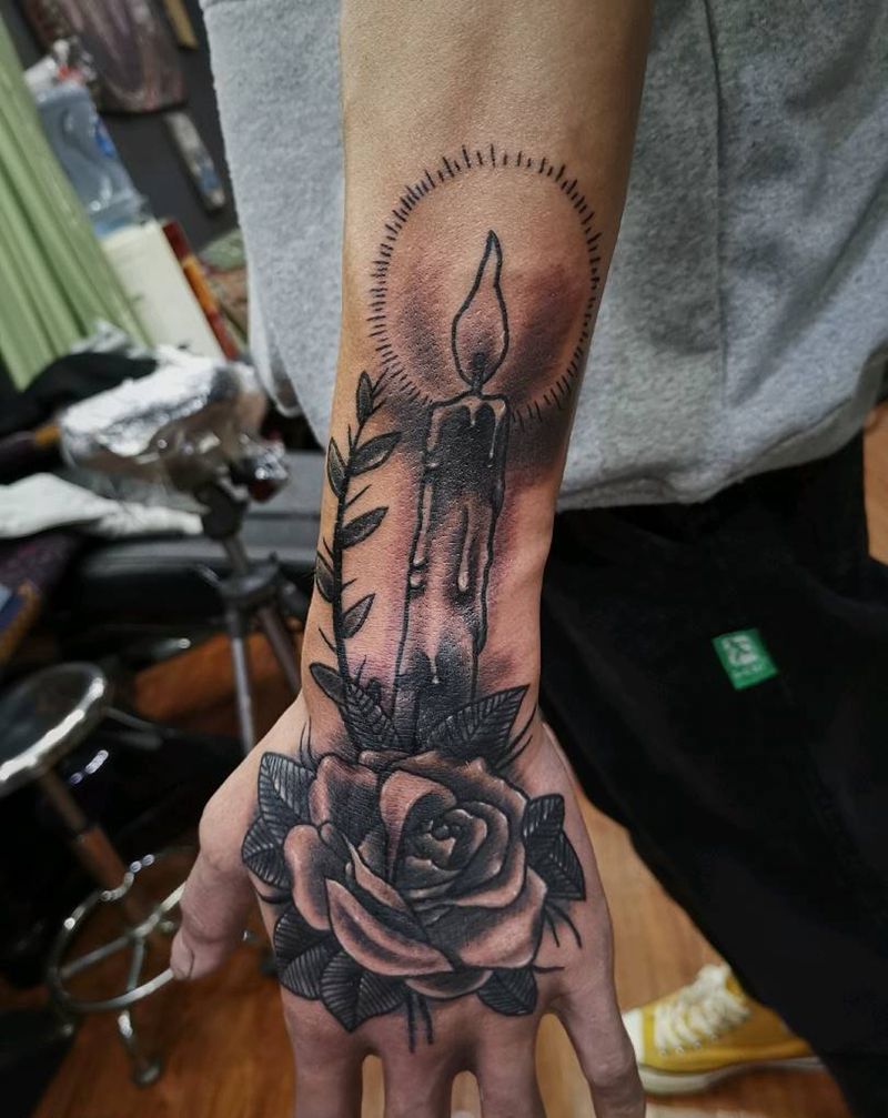 • 手背潮流时尚的玫瑰花眼睛纹身图案