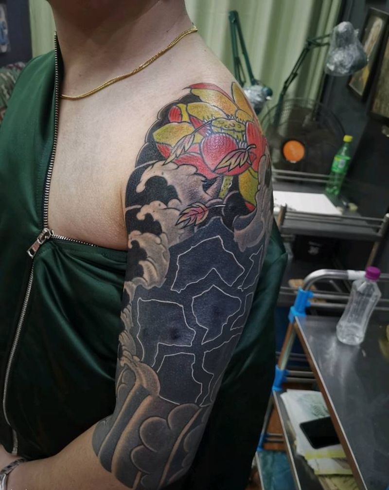 当前位置: 首页 >贵州省贵阳市纹身店-贵阳魔魂刺青纹身图案>个性大臂纹身图片_新传统纹身图案
