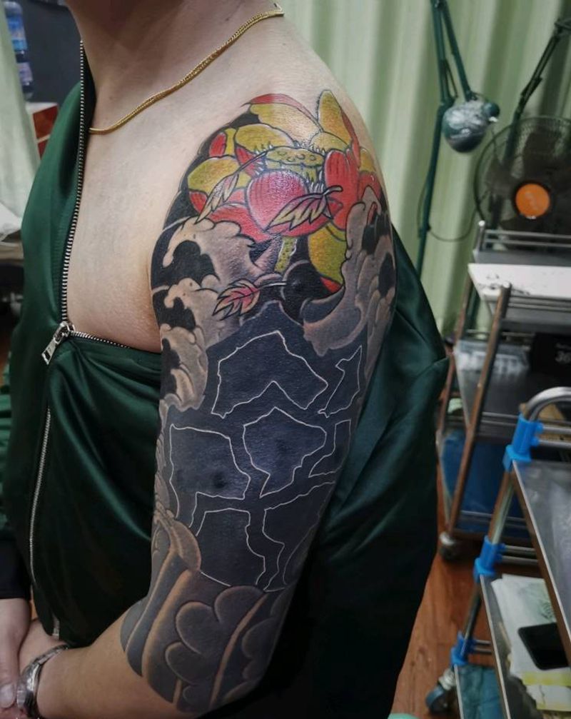 当前位置: 首页 >贵州省贵阳市纹身店-贵阳魔魂刺青纹身图案>个性大臂纹身图片_新传统纹身图案