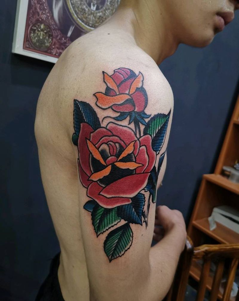 玫瑰纹身图片_Old School纹身图案