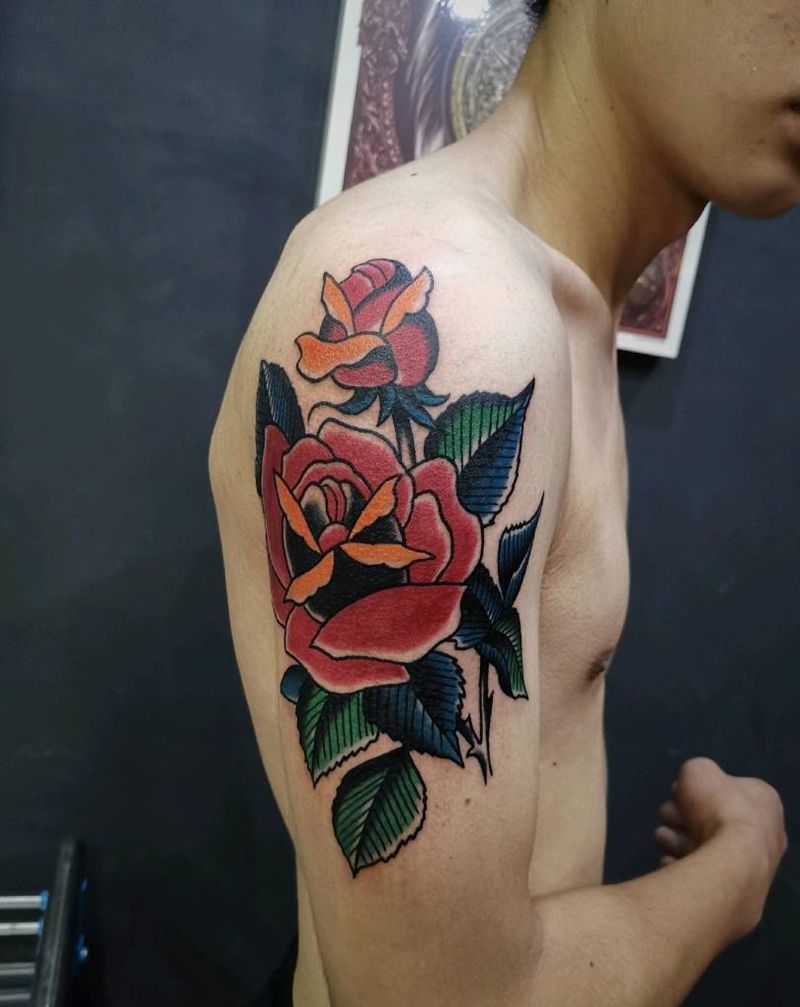 当前位置: 首页 >贵州省贵阳市纹身店-贵阳魔魂刺青纹身图案>玫瑰纹身图片_Old School纹身图案