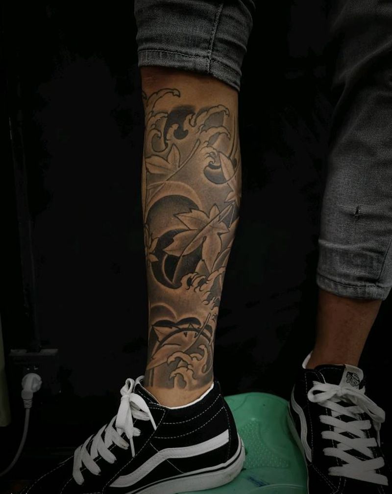 • T网红王老大花腿龙纹身图片_腿部新传统纹身图案