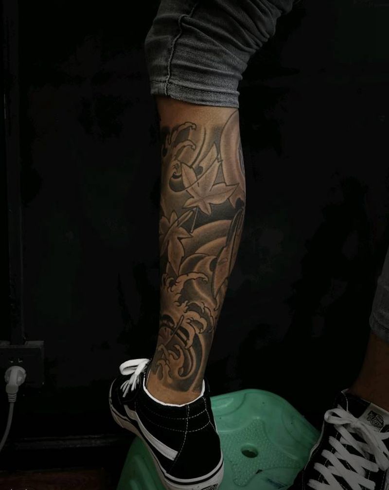 • T网红王老大花腿龙纹身图片_腿部新传统纹身图案
