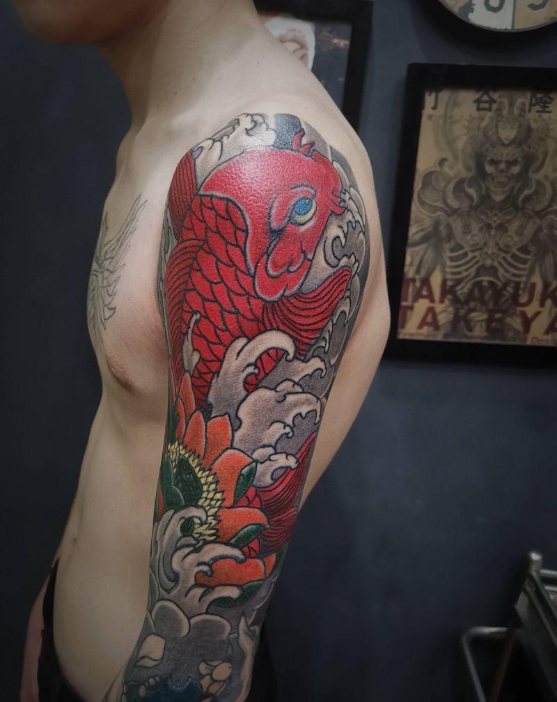 • T网红王老大花腿龙纹身图片_腿部新传统纹身图案
